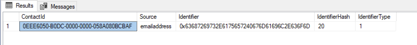 AND Identifier = CONVERT(VARBINARY(MAX), 'chris.auer@gmail.com')
